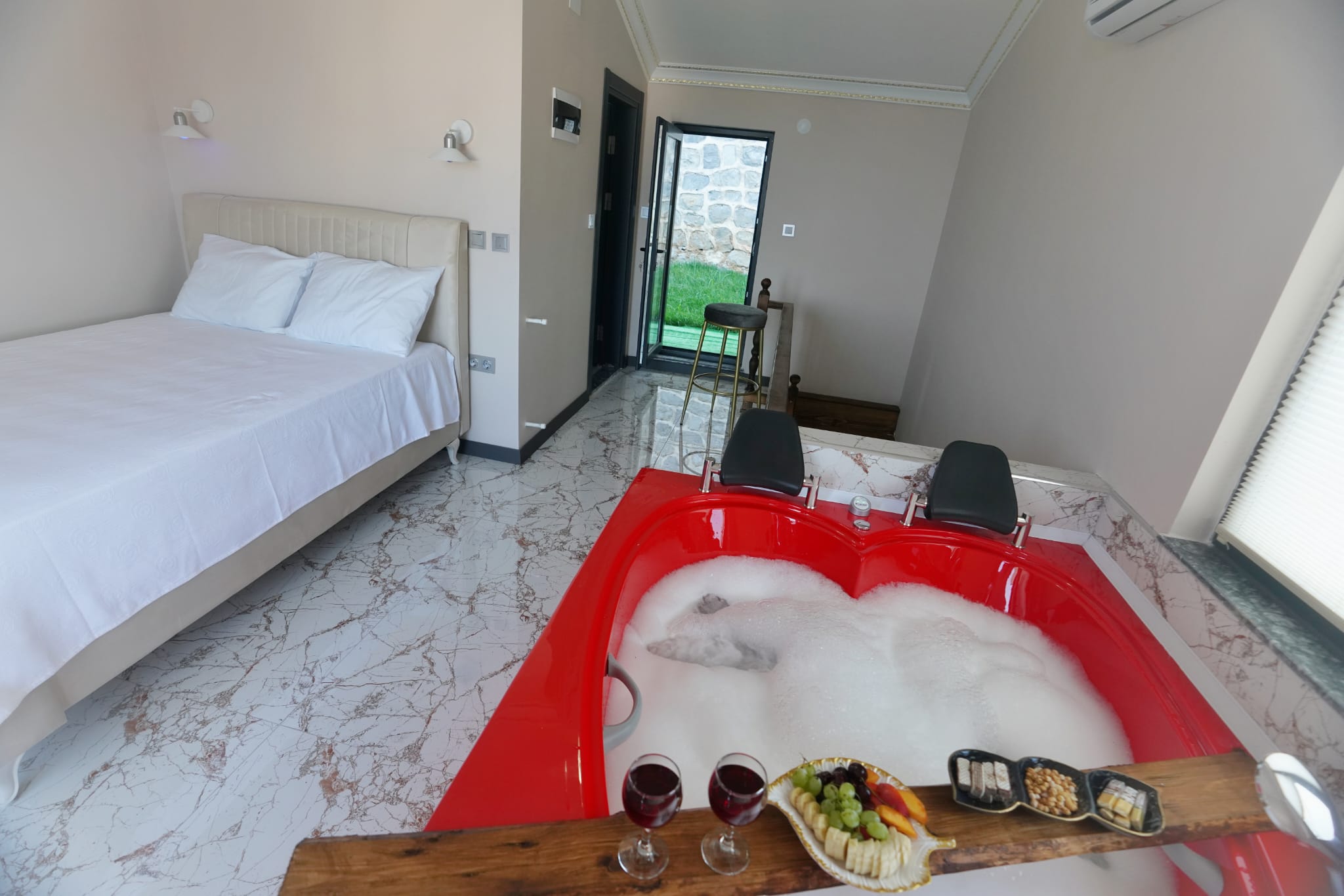 55 m²1+1 Villamız dublex olup, Balayı çiftler için tasarlanmıştır. Villada 3-4 kişi konaklama imkanına sahiptir. Villamız devlet sahil yolunun hemen üzerinde olup full deniz manzaralıdır. Villamızın giriş katında salon-mutfak ve 1 adet tek kişilik yatak mevcuttur. Ayrıca salonda L oturma grubu vardır. 2. katta Yatak Odası vardır. Yatak odasının içinde Çift kişilik King Yatak Odası takımı, Jakuzi, Banyo, Tuvalet ve balkonu vardır. Villamız full donanımlı olup misafirlerimzin aradığı bütün ev eşyaları mevcuttur. Villamızın eşyaları lüks konseptte dekore edilmiştir. Villamzda 2 adet 12.000 Btu İnverter Klima mevcuttur.